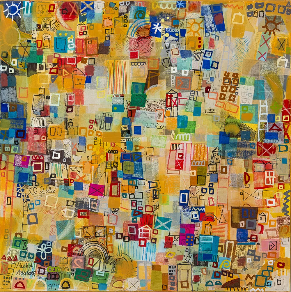 Faithful to her atypical style born of a singular mastery of mixed techniques, Micha Tauber surprises us with this glimpse. She offers us a different light through the power of her colors. Through the transparency of the subtly glued details, her works are reborn at each glance, with that authenticity that she is known for. This assumed sensibility charms us and encourages us to accept this invitation to plunge into her life in which each pleasure has its color.